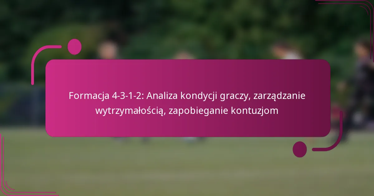 Formacja 4-3-1-2 to taktyczny układ w piłce nożnej, który kładzie nacisk na kontrolę w środku pola oraz zrównoważone podejście między obroną a atakiem. Aby odnieść sukces w tej formacji, zawodnicy muszą skupić się na kondycji, zarządzaniu wytrzymałością i zapobieganiu kontuzjom, zapewniając, że będą w stanie skutecznie sprostać wymaganiom zarówno ofensywnych, jak i defensywnych ról.