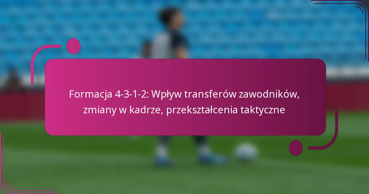 Formacja 4-3-1-2 to taktyczny układ w piłce nożnej, który kładzie nacisk na silną obecność w środku pola, z czterema obrońcami, trzema pomocnikami, jednym ofensywnym pomocnikiem i dwoma napastnikami. Transfery zawodników i zmiany w składzie mogą znacząco wpłynąć na tę formację, ponieważ zmieniają dynamikę drużyny i wymagają od trenerów dostosowania strategii, aby utrzymać konkurencyjność. Wprowadzenie nowych graczy może wzmocnić lub zakłócić istniejącą strukturę, co czyni taktyczne przekształcenia niezbędnymi dla sukcesu.