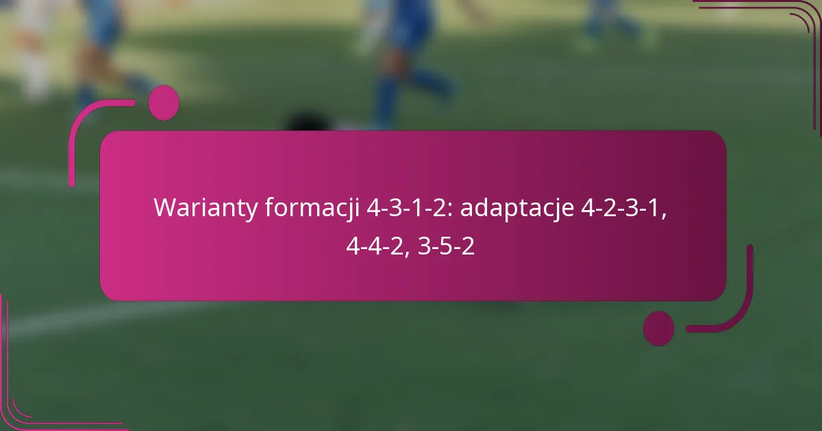 Formacja 4-3-1-2 służy jako wszechstronny układ taktyczny w piłce nożnej, łącząc siłę defensywną z opcjami ataku. Warianty takie jak 4-2-3-1 i 4-4-2 dostosowują tę formację, aby zwiększyć kontrolę w środku pola i zapewnić większą elastyczność w ataku, podczas gdy 3-5-2 oferuje inne podejście, wykorzystując wahadłowych do szerokości. Każda adaptacja pozwala zespołom dostosować swoje strategie w oparciu o mocne strony zawodników i sytuacje meczowe.
