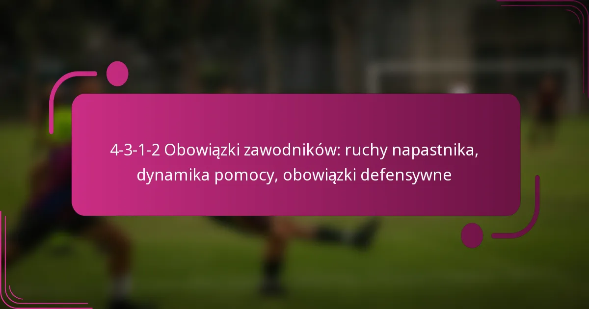 Obowiązki defensywne w formacji 4-3-1-2 koncentrują się na utrzymaniu struktury, skutecznej komunikacji i skoordynowanych działaniach wśród obrońców. Każdy zawodnik ma określone odpowiedzialności, które przyczyniają się do solidnej jednostki defensywnej, zapewniając, że mogą skutecznie przewidywać i reagować na ruchy przeciwnika.